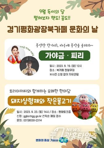 [광흥타임즈 = 조수제 기자] 경기도는 독서의 계절을 맞아 ‘펼쳐보자 책도, 꿈도’라는 표어와 함께 경기평화광장 북카페에서 9월 19일과 23일 문화의 날 행사를 한다.