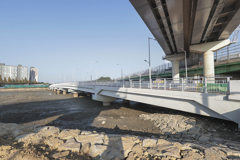 ‘해월교’는 배곧신도시 교통영향평가 개선사항을 반영해 준공한 것으로, 주변 지역과 연계하는 도로다. 해월교 준공으로 배곧~월곶간 연결도로가 없어 단절됐던 두 도시 간의 소통이 원활해지고, 배곧에서 월곶으로의 이동이 한층 수월해질 전망이다.