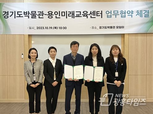 [광흥타임즈 = 조수제 기자] 경기문화재단 경기도박물관은 10월 19일 경기도박물관 소회의실에서 용인시청소년미래재단 용인미래교육센터와 경기도의 역사와 문화유산에 대한 교육 활동 및 청소년과 지역주민 교육 활성화를 위한 업무협약(MOU)를 체결했다.