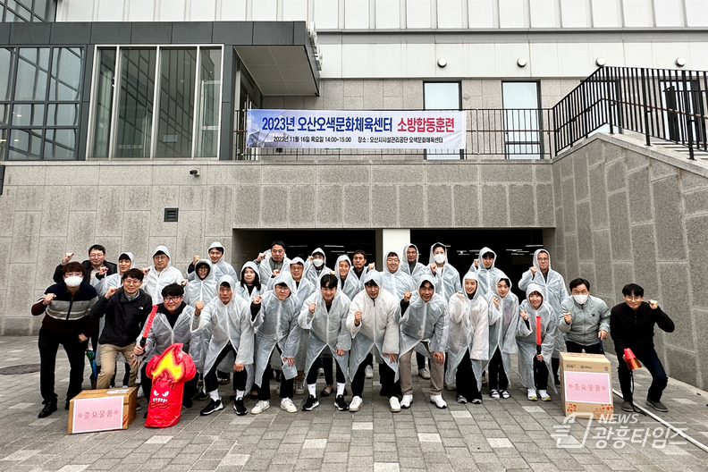 [광흥타임즈 = 조수제 기자] 오산오색문화체육센터는 16) 오산소방서 청악119안전센터와 함께 직원 및 고객들의 안전을 위해 소방 합동훈련을 실시했다고 밝혔다.