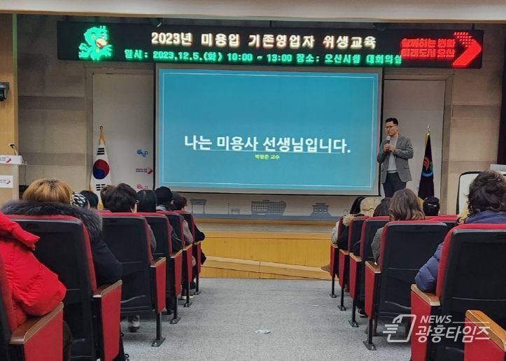 [광흥타임즈 = 조수제 기자] 오산시보건소는 지난 5일 시청 대회의실에서 미용업 기존 영업자 100여 명을 대상으로 그간 코로나19로 진행하지 못했던 집합교육을 3년여 만에 실시했다.