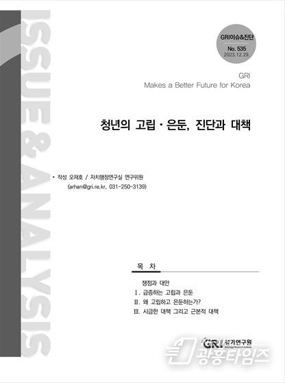경기연구원은 이러한 내용을 담은 ‘청년의 고립·은둔, 진단과 대책’ 보고서를 발간했다고 9일 밝혔다.