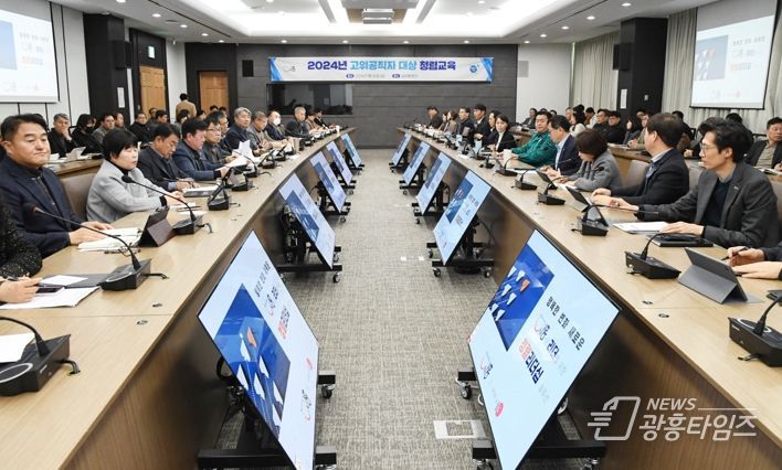 [광흥타임즈 = 조수제 기자] 시흥시는 지난 26일 시청 글로벌센터에서 5급 이상 간부 공무원 108명을 대상으로 ‘2024년 고위공직자 대상 청렴교육’을 진행했다.