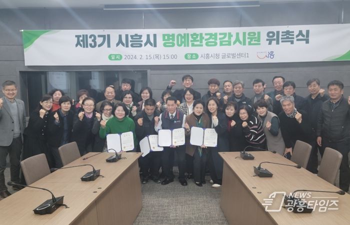 [광흥타임즈 = 조수제 기자] 시흥시가 지난 15일 ‘제3기 명예환경감시원’을 36명 위촉했다. 이번에 위촉된 명예환경감시원은 2권역으로 나눠 관내 각종 환경오염 원인행위를 감시하고, 신고하는 임무를 수행하게 된다.