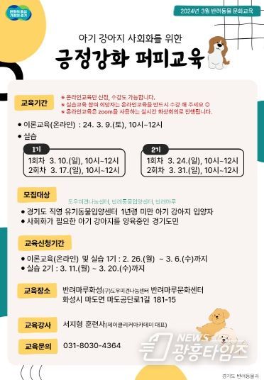 교육 신청과 자세한 사항은 경기도동물복지보호플랫폼에서 확인이 가능하다.