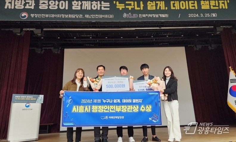 [광흥타임즈 = 조수제 기자] 시흥시는 행정안전부와 한국지역정보개발원이 주최한 ‘누구나 쉽게, 데이터 챌린지 대회’에서 시의 2개 과제가 최우수 과제로 선정돼 행정안전부 장관상을 수상했다고 지난 27일 밝혔다.