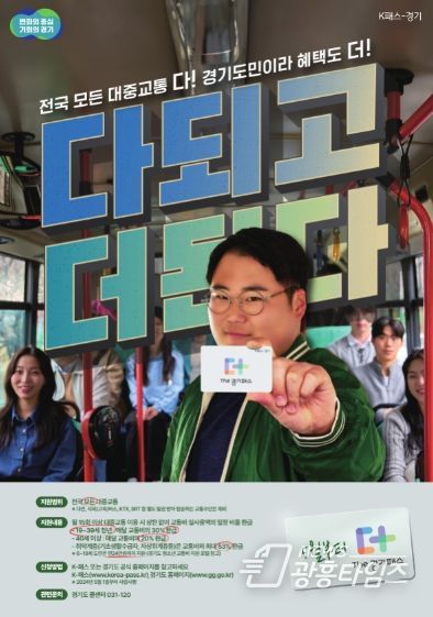 한편 The 경기패스는 K-패스의 월 60회 한도를 무제한으로 확대하고, 매달 대중교통 비용의 20%(20·30대 청년 30%, 40대 이상 일반 20%, 저소득층 53%)를 환급해 준다. 30% 환급 대상인 청년의 기준도 19~34세에서 19~39세까지 확대했다. 사업 대상이 아닌 어린이와 청소년의 교통비 절감을 위해 연간 24만 원을 지원하는 ‘경기도 어린이·청소년 교통비 지원사업’ 신청도 지난 2일부터 받고 있다.