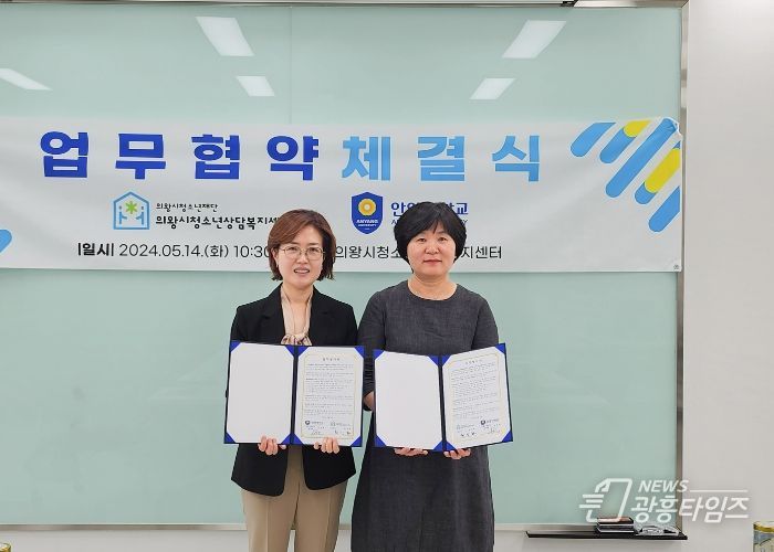 [광흥타임즈 = 구민지 기자] 의왕시청소년재단 산하 의왕시청소년상담복지센터는 지난 14일 안양대학교 학생상담센터와 청소년안전망 운영 활성화를 위한 업무협약(MOU)을 체결했다고 밝혔다.