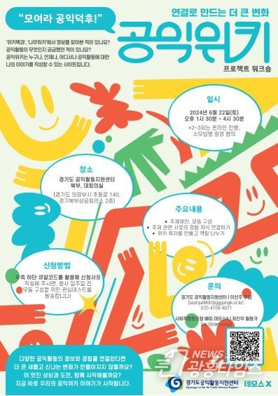 [광흥타임즈 = 조수제 기자] 경기도공익활동지원센터는 공익활동가와 도민이 함께 만들어 가는 ‘공익위키’의 첫 과정인 ‘프로젝트 워크숍’ 참여자를 19일까지 모집한다.
