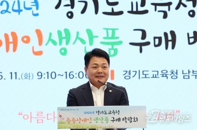 [광흥타임즈 = 조수제 기자] 경기도의회 교육기획위원회 소속 이인규 의원(더불어민주당, 동두천1)은 6월 11일 경기도교육청 남부청사 1층 로비에서 열린 ‘2024년 경기도교육청 중증장애인생산품 구매박람회’에 참석했다.