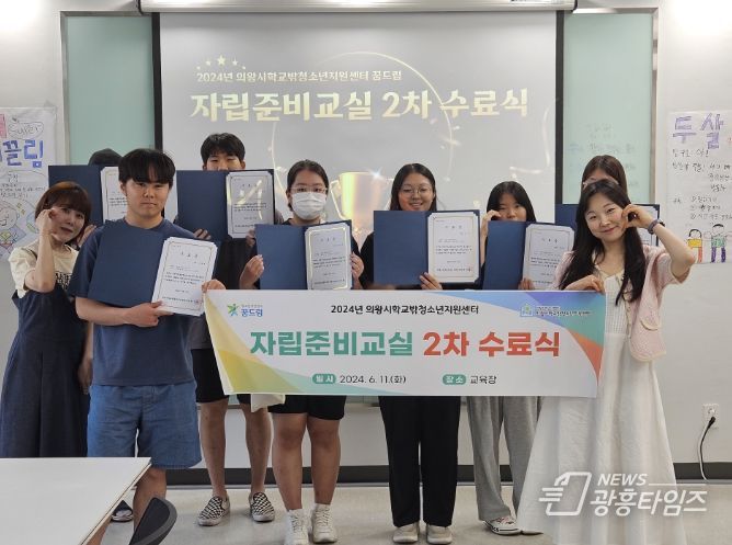 [광흥타임즈 = 구민지 기자] 의왕시청소년재단 산하 의왕시학교밖청소년지원센터는 학교 밖 청소년의 성공적인 자립단계 훈련을 위해 운영한 ‘2024년 2차 자립준비교실’을 지난 11일 성공적으로 마무리했다고 밝혔다.