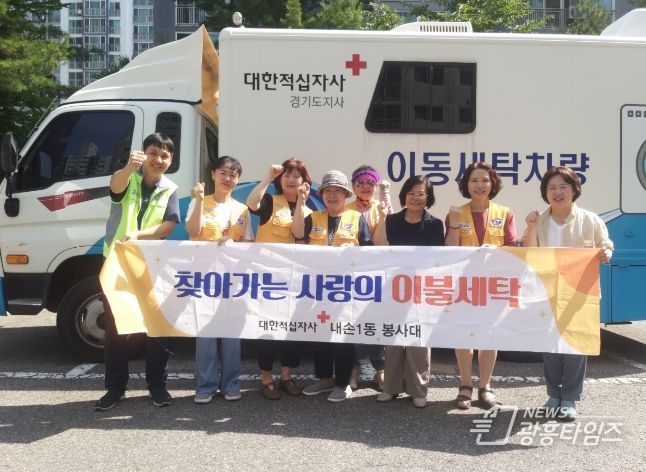 [광흥타임즈 = 구민지 기자] 대한적십자사 내손1동 봉사대는 지난 21일 독거어르신 등 취약계층 6가구 대상으로 의왕내손주공아파트관리소와 협력해‘찾아가는 사랑의 이불세탁’사업을 진행했다.
