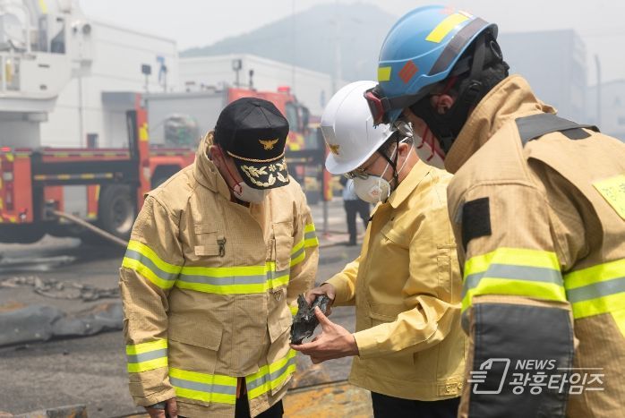 [광흥타임즈 = 조수제 기자] 김동연 경기도지사는 24일 경기도 화성시 서신면 소재 일차전지 제조 업체에서 발생한 화재 현장을 찾아 가용자원을 총동원해서 신속하게 화재진압을 해달라고 당부했다.