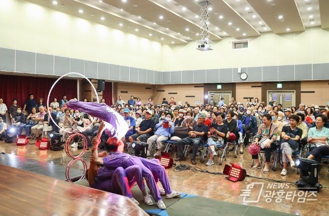 [광흥타임즈 = 구민지 기자] 의왕시 아름채노인복지관은 지난 26일 내손2동주민센터 대강당에서 ‘신나는 예술여행, 동춘서커스’ 공연을 개최했다.