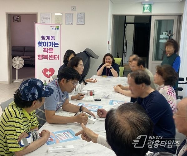 ‘찾아가는 작은 행복센터’는 청계동 찾아가는 보건복지팀이 지역주민의 복지와 건강관리에 대한 관심도 및 자가 건강 능력 증진을 위해 시행하는 사업이다.