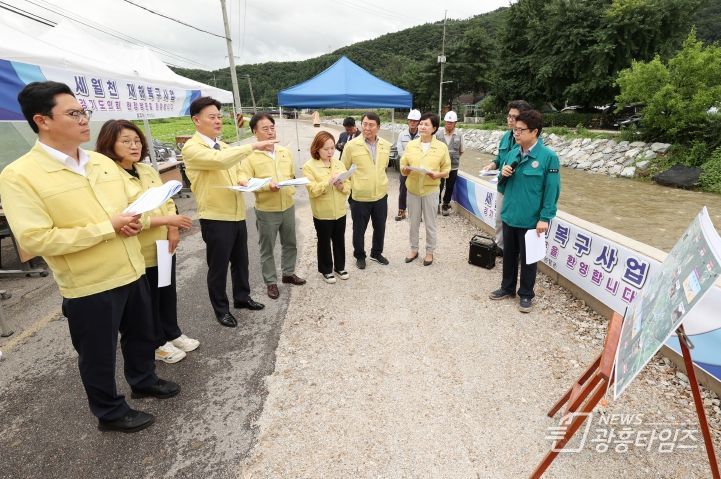 최종현 대표의원은 “세월천은 지난 2022년 8월 집중호우로 교량과 제방 등이 유실되면서 하천 주변 지역에 인명피해가 발생하고 주택이 침수되는 등 큰 피해를 입어 특별재난구역으로 지정돼 재해복구 사업이 진행 중인 곳”이라며 “집중호우에 공사 현장이 또다시 피해를 입지 않도록 만전을 기해 주시고, 주요 공정이 기한 내에 완료될 수 있도록 최선을 다해줄 것”을 당부했다.