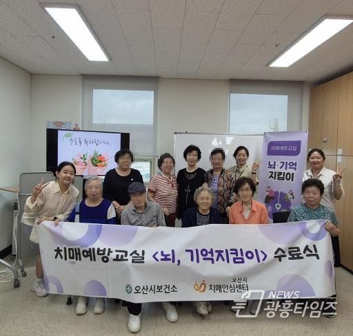 [광흥타임즈 = 조수제 기자] 오산시보건소 치매안심센터는 6월부터 7월까지 2개월간 관내 60세 이상 어르신 9명을 대상으로 치매예방교실 3기 ‘찾아가는 뇌, 기억지킴이’를 운영하고 지난 23일 프로그램 수료식을 개최했다.