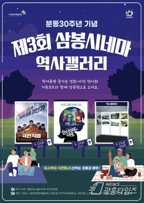 분동 30주년을 기념해 역사갤러리와 함께 개최되는 이번 삼봉시네마에서는 열대야를 피해 야외로 나오는 시민들의 더위 해소와 문화생활 충족을 위해 다양한 무대를 선보이고 대형스크린을 통해 고화질 영화도 상영한다.