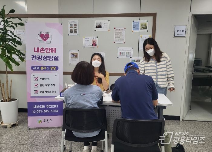 [광흥타임즈 = 구민지 기자] 의왕시 내손2동 주민센터가 지역 주민들의 건강관리를 위해 운영하고 있는‘내손안에 건강상담실’이 주민들로부터 큰 호응을 얻고 있다.