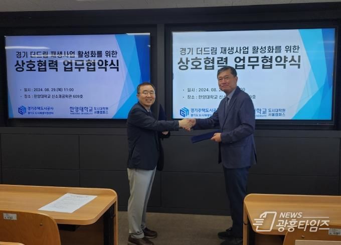 [광흥타임즈 = 조수제 기자] 경기도가 경기주택도시공사에 위탁해 운영하는 경기도 도시재생지원센터와 한양대학교 도시대학원이 29일 ‘경기 더드림 재생사업 활성화’를 위한 업무협약을 체결했다.