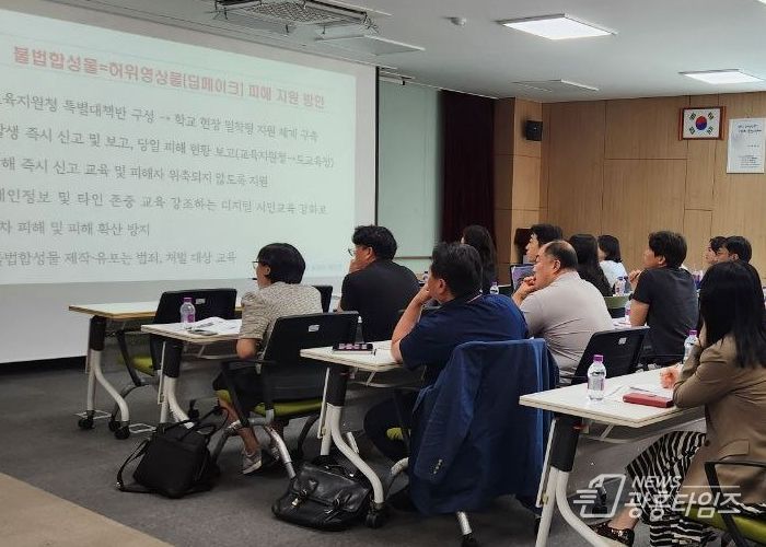 연수에서는 ▲딥페이크 성범죄 피해 영상물 삭제, 차단 기관 안내 등 사안 처리 ▲심리상담 및 치료 등 피해 학생에 대한 구체적 지원 방안을 안내했다.