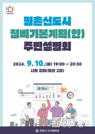 [광흥타임즈 = 조수제 기자] 안양시는 오는 10일 오후 7시부터 8시30분까지 안양시청 별관 2층 강당에서 ‘평촌신도시 정비기본계획(안) 주민설명회’를 개최한다고 5일 밝혔다.