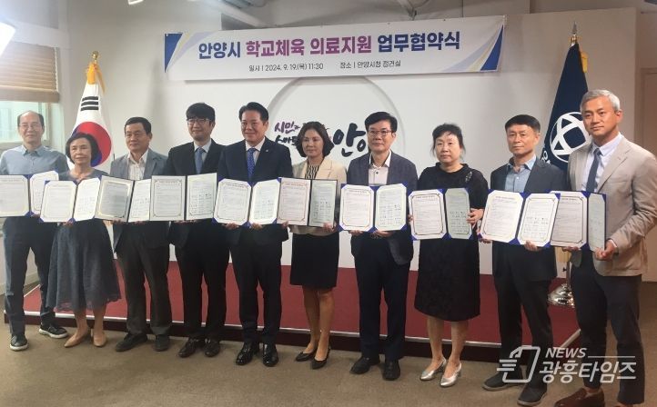 [광흥타임즈 = 조수제 기자] 경기도안양과천교육지원청은 9월 19일, 안양시, 평촌서울나우병원, 6개교(중 4교, 고 2교)와 학교체육 의료지원을 위한 업무협약을 체결했다.