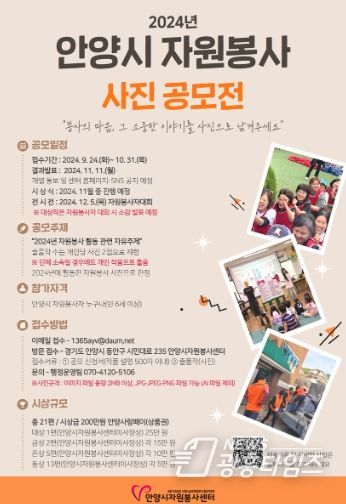 [광흥타임즈 = 조수제 기자] 안양시자원봉사센터는 오는 10월 31일까지 2024년 자원봉사 사진 공모전을 개최한다고 25일 밝혔다.