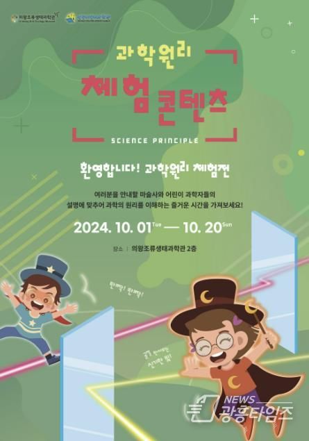 [광흥타임즈 = 구민지 기자] 의왕도시공사 조류생태과학관이 본격적인 나들이 계절을 맞아 미래 과학 꿈나무들의 호기심을 풍성하게 채워줄 특별기획전 ‘어서와-과학은 처음이지?’를 10월 1일부터 20일까지 개최한다.