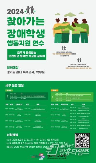 [광흥타임즈 = 조수제 기자] 경기도교육청이 장애학생의 행동 문제로 어려움을 겪고 있는 특수교육 현장을 지원하고자 ‘2024 찾아가는 장애학생 행동지원 연수’를 운영한다.