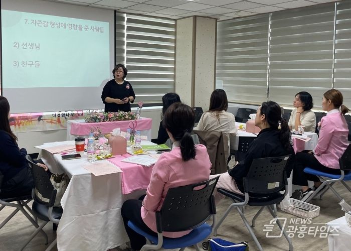 프로그램 1회기(10월 10일)에는 ‘여성, 그대의 이름은’ 강의와 참 나를 발견하기 활동을 진행했다. 2회기는 ‘건강한 여성’ 강의와 자존감 회복활동을 실시한다. 3회기는‘다름의 축복’ 강의와 성격유형 파악하기, 4회기는‘영향력’강의와 자녀교육에 대한 나눔, 5회기는 ‘따뜻한 대화’ 주제로 소통 기술을 배운다.