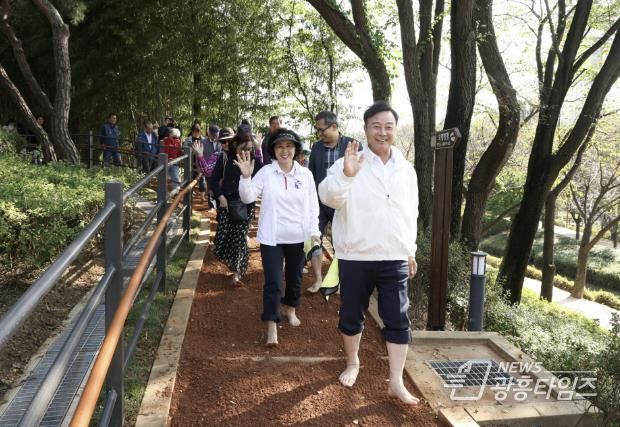 이날 개장식에는 김성제 의왕시장을 비롯해 김학기 의왕시의회 의장 및 시의원과 시민 등 100여 명이 참석해 맨발걷기길 개장을 축하하고 직접 체험하는 시간을 가졌다.