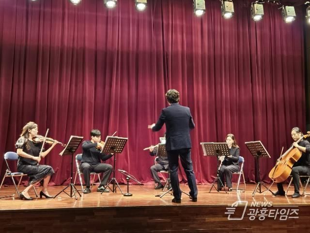 [광흥타임즈 = 구민지 기자] 의왕시 내손2동은 완연한 가을을 맞아 지난 17일 지역주민을 대상으로 내손2동 주민센터 대강당에서 오푸스필하모닉오케스트라 주최로‘쏙쏙클래식’음악회를 개최했다.