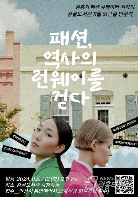 [광흥타임즈 = 조수제 기자] 안산시 감골도서관은 다음 달 5일과 11일, 총 2회에 걸쳐 패션인문학 강연 ‘패션, 역사의 런웨이를 걷다’를 개최한다고 22일 밝혔다.