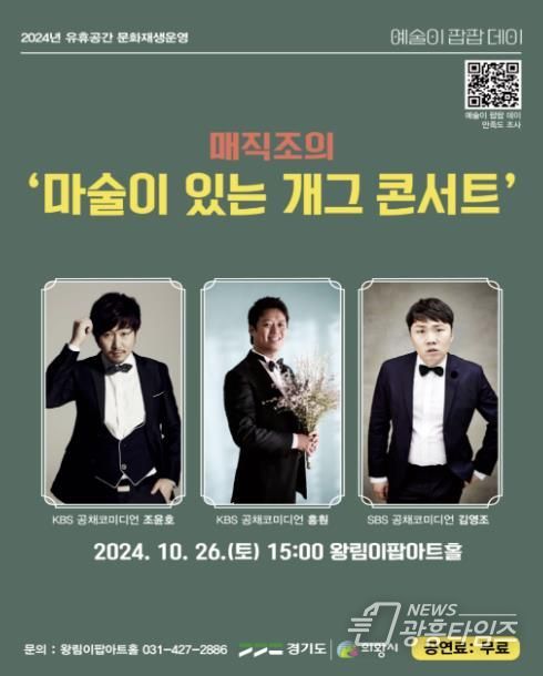 [광흥타임즈 = 구민지 기자] 의왕시는 오는 10월 26일 오후 3시 왕림이팝아트홀에서 ‘예술이 팝팝 데이’ 시즌2 사업의 일환으로 매직조의 ‘개그콘서트’ 공연을 선보인다.
