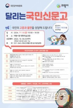 [광흥타임즈 = 구민지 기자] 의왕시가 국민권익위원회와 함께 오는 11월 8일 의왕시청 대회의실에서 ‘달리는 국민신문고’를 운영한다.
