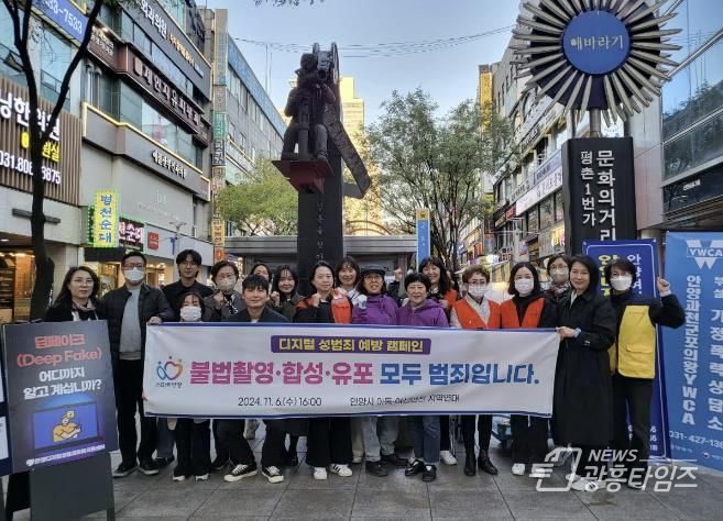 [광흥타임즈 = 조수제 기자] 안양시가 지난 6일 16시 범계역 일원에서 일상 속 디지털 성범죄의 심각성을 알리고 예방 등의 관심 제고를 위해 ‘디지털 성범죄 예방 캠페인’을 펼쳤다고 7일 밝혔다.
