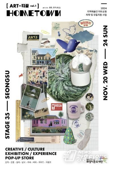 [광흥타임즈 = 구민지 기자] (재)화성시문화재단은 오는 11월 20일부터 24일까지 서울 성수동에 위치한 스테이지35에서 에서 ‘ART-티끌 vol.1 HOMETOWN’ 팝업스토어를 열어 화성 지역 예술인들의 작품을 기반으로 한 다양한 아트 굿즈를 선보인다.