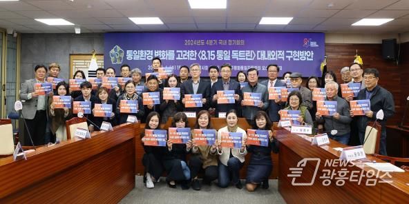황태경 오산시협의회장은 개회사에서 “한반도의 미래는 그 어느 때보다도 불확실한 상황이며 통일 독트린은 단순한 정책이 아니라 한반도의 평화와 번영을 위한 청사진으로 작용한다고 생각하며 오늘 4분기 정기회의를 통해 지속가능하고 현실적인 통일 방안을 모색하고 이를 대내외적으로 실천하기 위한 논의의 장이 되길 바란다”고 했다.