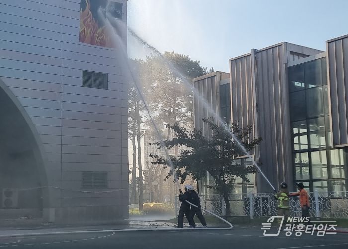 이번 훈련은 야외 농구장/족구장 방향 동쪽 계단에서 발생한 화재를 가정하여 신속한 초기 화재진압과 자위소방대의 능력을 강화하기 위해 인명대피 및 구조훈련 실시, 자체 소방시설을 활용 하여 실질적인 대응능력 강화, 관내 소방서와의 합동 화재진압 등으로 진행됐으며,