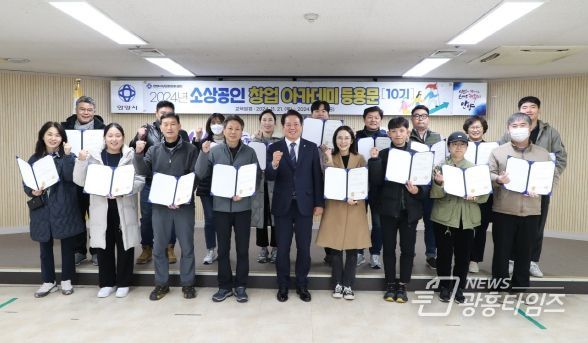 [광흥타임즈 = 조수제 기자] 안양시는 창업자와 예비창업자, 소상공인의 준비된 창업을 유도하기 위한 ‘소상공인 창업아카데미 등용문’의 10기 수료생을 배출했다.