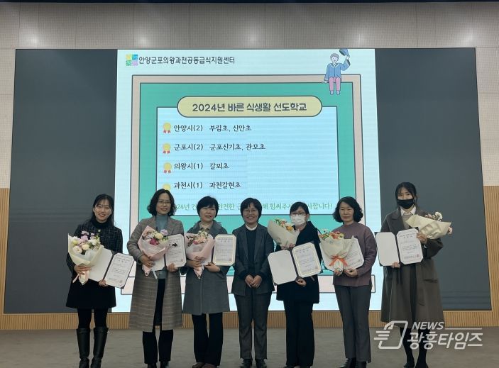 [광흥타임즈 = 조수제 기자] (재)안양·군포·의왕·과천 공동급식지원센터(이사장 최대호 안양시장, 하은호 군포시장, 김성제 의왕시장, 신계용 과천시장)는 ‘2024 바른 식생활 선도학교’로 안양시의 부림초등학교·신안초등학교, 군포시의 군포신기초등학교·관모초등학교, 의왕시의 갈뫼초등학교, 과천시의 과천갈현초등학교 등 총 6개교를 지정했다고 18일 밝혔다.
