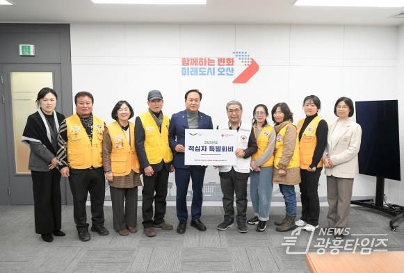 이날 전달식에는 이권재 오산시장을 비롯해 대한적십자사 경기도지사 이재정 회장, 대한적십자사봉사회 오산지구협의회 김현옥 회장 등 봉사회 회원들이 함께 참석했다.