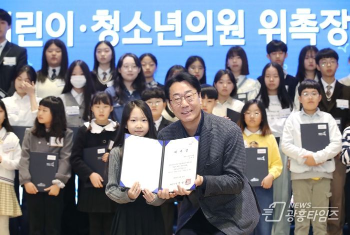 또, 정명근 시장은 새롭게 임기를 시작하는 제8대 어린이·청소년의원 80여 명에게 위촉장을 수여하고, 이어진 순서로 시장,시의회,시의원은 제8대 어린이·청소년의원에게 직접 의원 배지를 달아주며 이들을 격려했다.