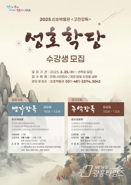 [광흥타임즈 = 조수제 기자] 안산시 성호박물관은 오는 25일부터 성호학당 교육 참가자 50명을 모집한다고 11일 밝혔다.
