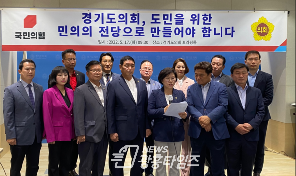 [경기도의회=조수제 기자] 경기도의회 국민의힘 김규창, 이애형, ... 現도의원·도의원 후보들은 오늘(17일) 경기도의회 브리핑룸에서 “잃어버린 5년에 대한 희생을 끌어안고 회복시켜줄 대통령·경기도지사와 함께 할 수 있도록 해달라”며 김은혜 경기도지사 후보와 국민의힘 도의원 후보들에 대한 지지와 성원을 호소했다.