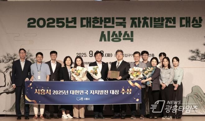 [광흥타임즈 = 조수제 기자] 시흥시는 지난 9월 23일 서울 백범김구기념관에서 열린 ‘2025년 대한민국 자치발전 대상’ 시상식에서 기초자치단체 부문 수상의 영예를 안았다.