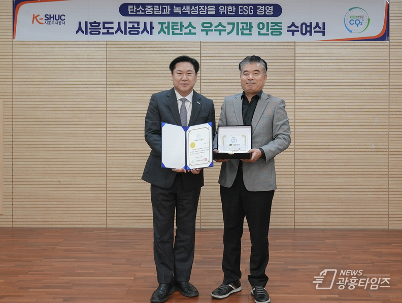 [광흥타임즈 = 조수제 기자] 시흥도시공사는 도시재생안전협회로부터 ‘ESG 저탄소 우수기관’인증을 획득하고, 지난 23일 인증식을 진행했다고 밝혔다.