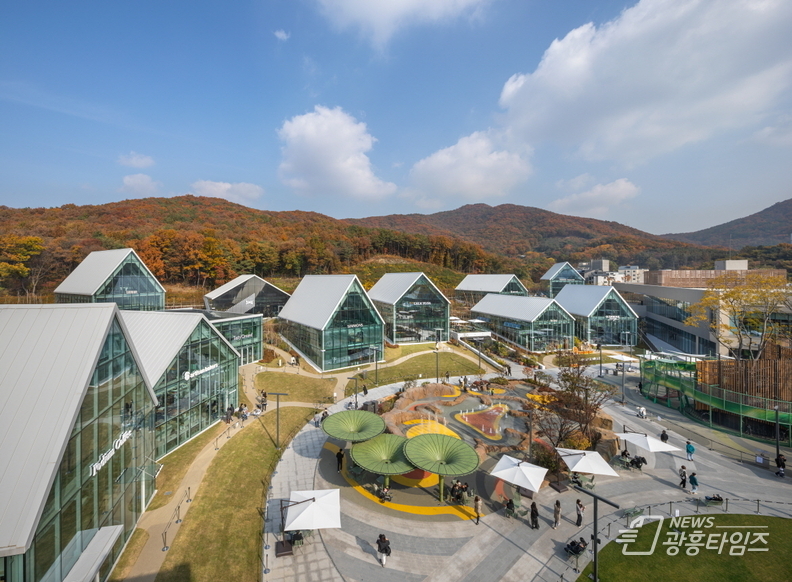 해당 건축물은 웨이브 입면 옥외계단을 통해 백운호수를 바라보며 산책할 수 있으며, 30m 높이의 대형 유리돔과 300평 규모의 넓은 광장, 바라산의 산세를 그대로 살린 10개의 이색적인 유리 건물이 특징이다.