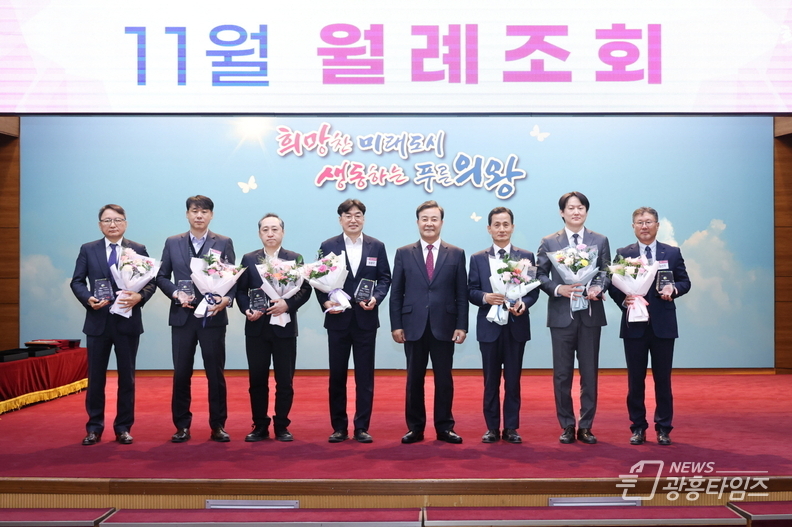 [광흥타임즈 = 구민지 기자] 의왕시가 11월 3일 시청 대회실에서 열린 월례조회에서 ‘제1회 의왕시 건축문화상’시상식을 개최하고 3개 수상작의 건축주, 설계자, 시공자에게 상패를 수여했다.